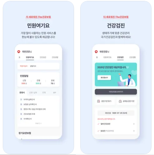 - 메인 페이지에서 '건강검진' 메뉴를 클릭합니다.