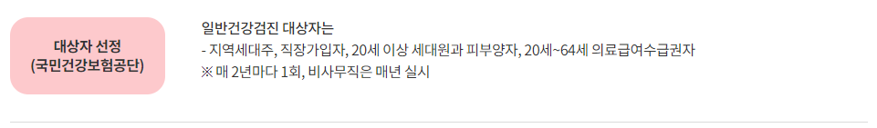 주의할 점은 격년제로 실시되는 점입니다. 홀수 년도 출생자는 홀수 해에, 짝수 년도 출생자는 짝수 해에 검진을 받게 됩니다. 단, 직장가입자 중 비사무직 근로자는 매년 검진 대상이 되니 참고하세요.