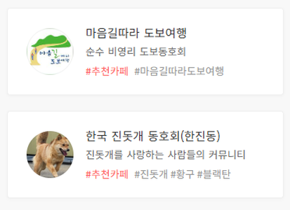 - '내 카페' 메뉴를 통해 가입한 카페 목록을 확인하고 바로 이동할 수 있습니다.